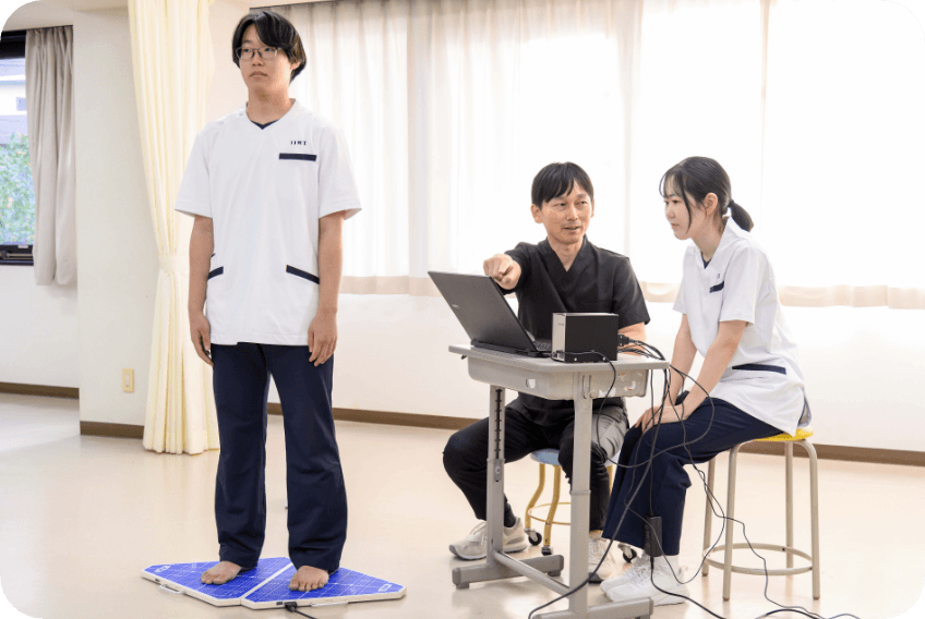 バイオメカニクスの観点から歩行・立ち上がり等の基本動作を学ぶとともに、介助技術への応用や重要となる筋の触察を学んでいきます。